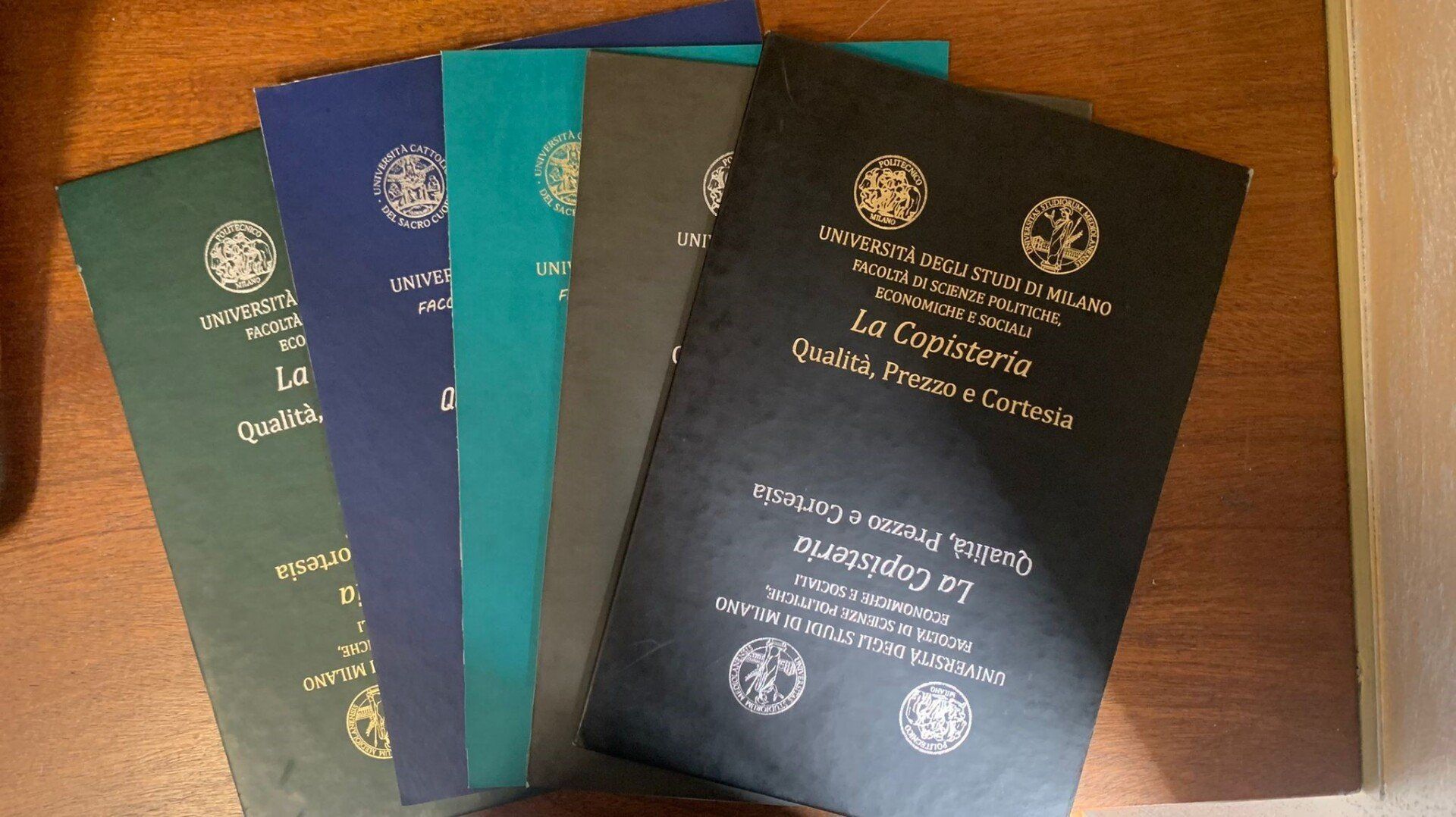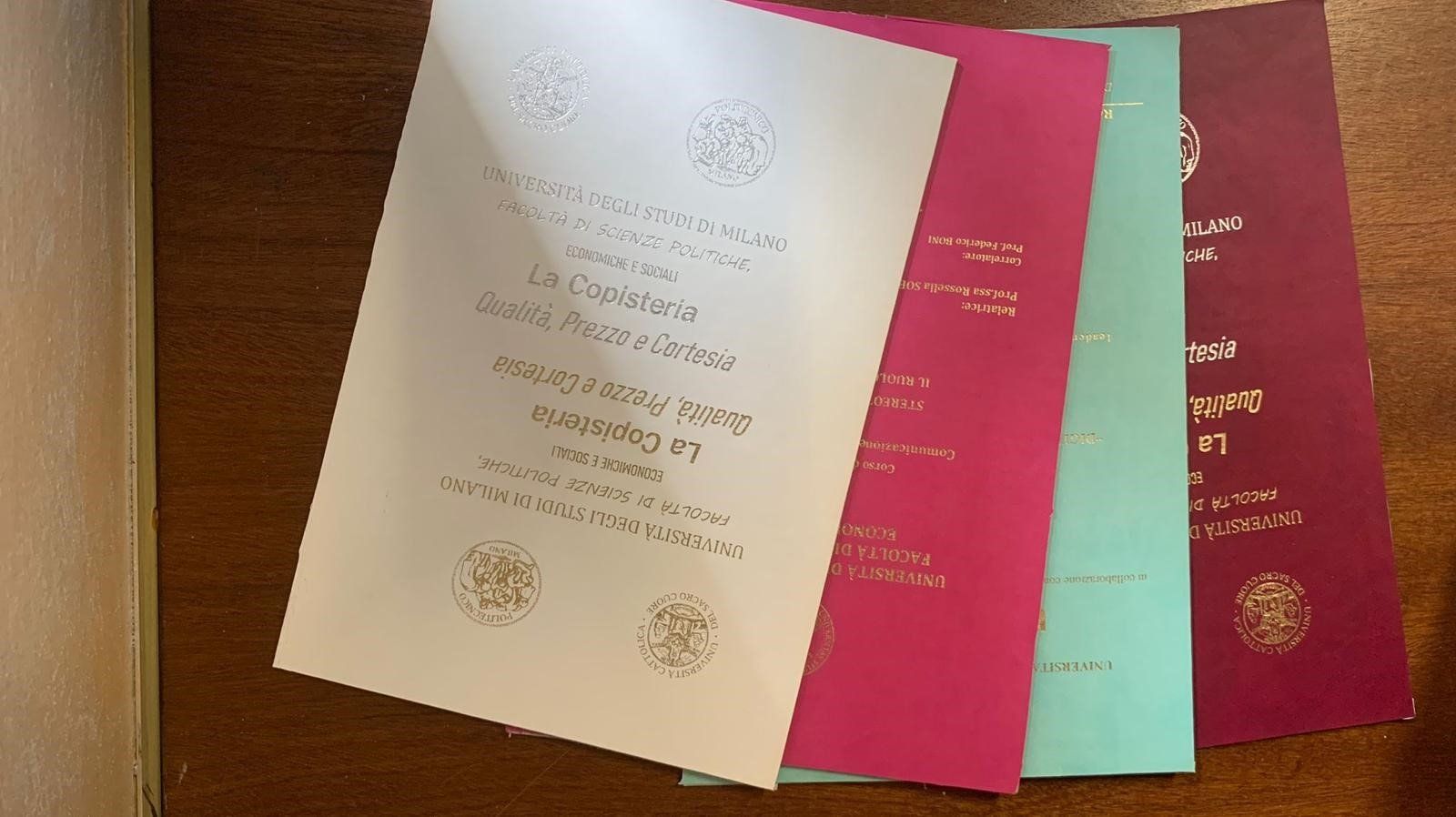 CDa noi è possibile eseguire: duplicazioni su vari supporti cartacei, Riduzioni, Ingrandimenti, Fascicolazioni, Graffature, Regolazione automatica dei colori.on dedizione e competenza i nostri tecnici si occupano della stampa e rilegatura della tesi di laurea , anche in tempi brevi, offrendo Da noi è possibile eseguire: duplicazioni su vari supporti cartacei, Riduzioni, Ingrandimenti, Fascicolazioni, Graffature, Regolazione automatica dei colori.servizi di stampa minuziosi e rapidi per studenti. L’esperienza maturata negli anni e la vicinanza con l’Università Statale e con in Conservatorio Giuseppe Verdi rendono la nostra attività il punto di riferimento per tutti coloro che necessitano di eccellenti stampe digitali, rilegature rapide e fotocopie.